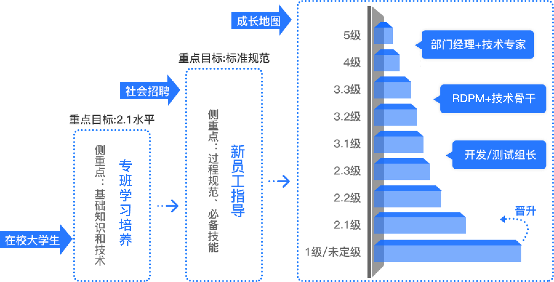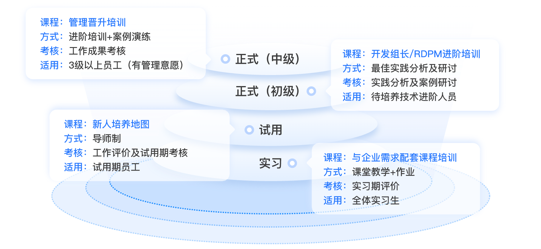 专业发展通道,一般设置为5-6职级,每职级由低到高分为基础等、合格等、专业等。基础等是指达到本职级的基础要求(70%),但仍需巩固、提高;合格等是指达到本职级的大部分要求(80%);专业等是指全面达到本职级要求(90%),是本职级内的标杆。1职级-初做者,一般仅设2个职等。管理发展通道,部分序列内设置了管理发展的方向,公司拟将依据领导梯队的理念,开发统一的通道标准。